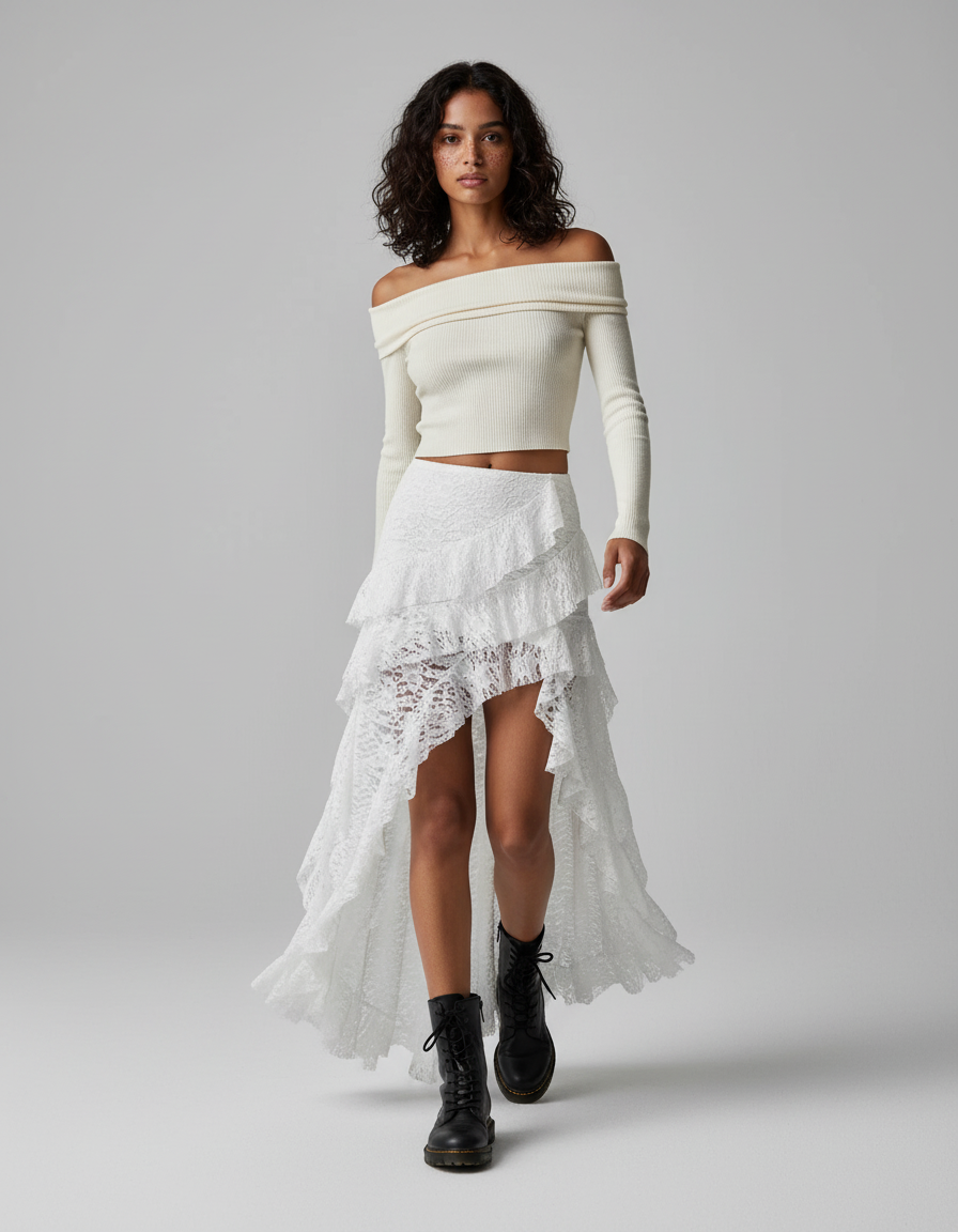 Jupe Dentelle Blanche Asymétrique Fluide : L'Élégance Bohème Réinventée