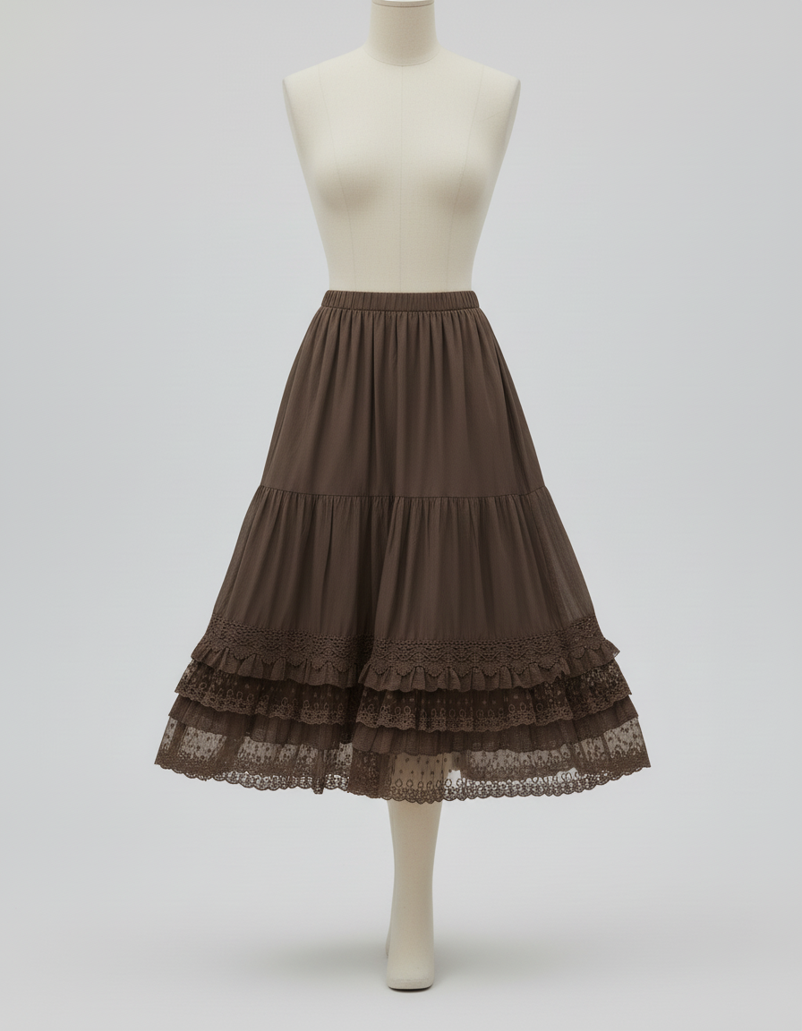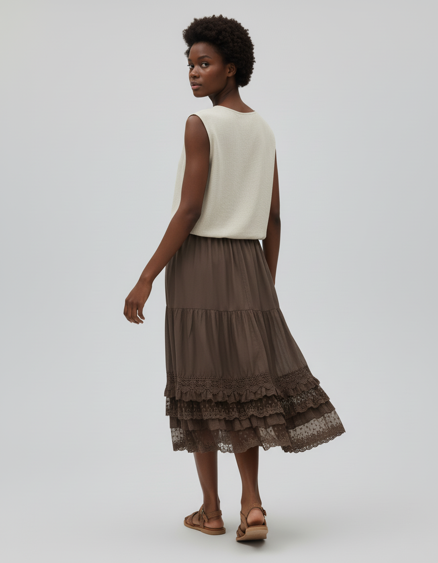 Conçue pour envelopper votre silhouette avec une douceur inégalée, notre Jupe Dentelle Marron est une promesse de bien-être absolu. Son tissu léger et aérien, enrichi de délicats volants de dentelle, assure une liberté de mouvement fluide, vous permettant de flâner ou de danser avec une grâce naturelle. Le tombé impeccable de cette pièce premium, élégamment superposée, crée une silhouette aérienne qui s'adapte à chaque pas. Vous oublierez que vous la portez, ne retenant que la sensation d'une étoffe de qualité caressant votre peau, idéale pour les journées ensoleillées et les soirées douces.