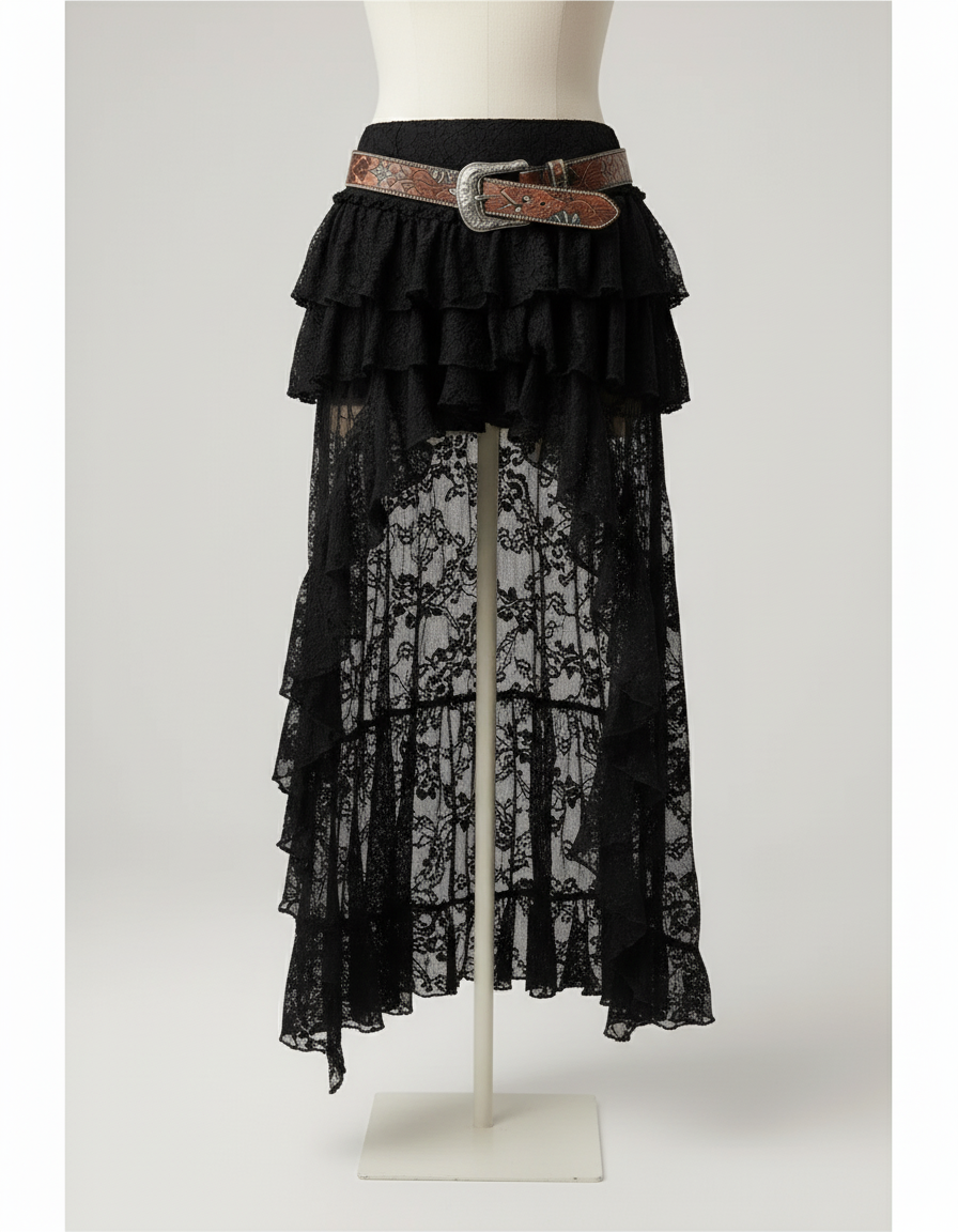 Jupe Dentelle Noire Asymétrique Bohème : L'Élégance Audacieuse Redéfinie