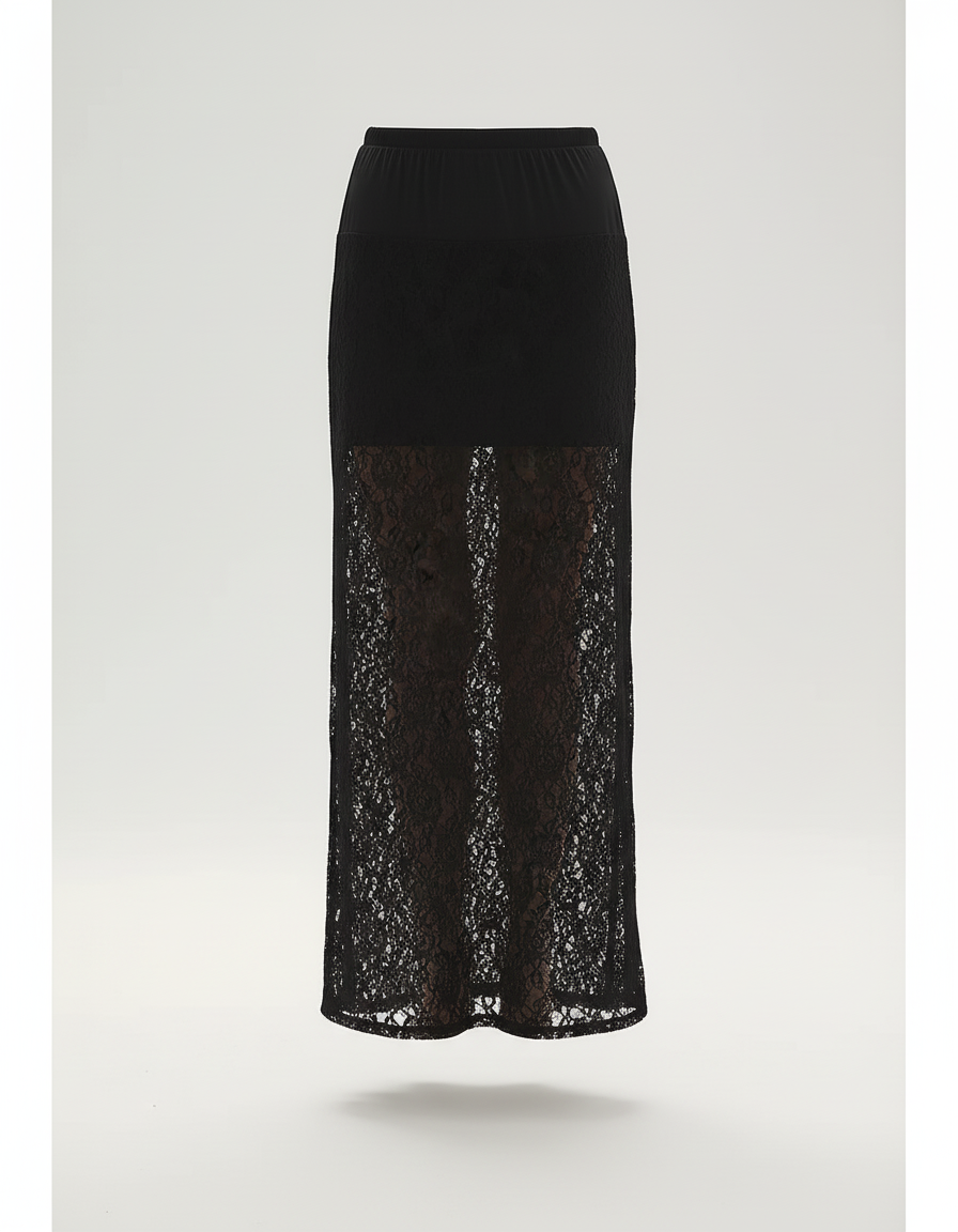 Adoptez un look sophistiqué et audacieux avec notre Jupe Dentelle Noire Transparente, une pièce maîtresse pour une allure glamour.